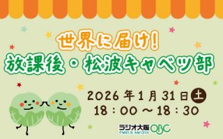 1月31日(土) 午後6時からは、今が旬の甘くてみずみずしい「松波キャベツ」をご紹介する特別番組『世界に届け!放課後・松波キャベツ部』をお送...